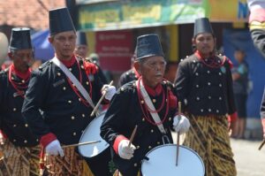 LESINDO.COM – Di bawah terik matahari siang, barisan prajurit berseragam hitam dengan blangkon tinggi dan jarik batik sogan berjalan tegap di jalan utama Kartasura. Para prajurit yang sudah memasuki usia senja masih terlibat dalam kirab budaya HUT Kartasura ke 345 sebagai salah satu pembuka jalan atau cucuk lampah. Di tangan mereka tergenggam genderang besar bertuliskan “Karaton Surakarta Hadiningrat”. Langkah mereka mantap, meski usia tak lagi muda. Irama tabuhan drum berpadu dengan gemerincing sorai penonton yang memadati pinggiran jalan.