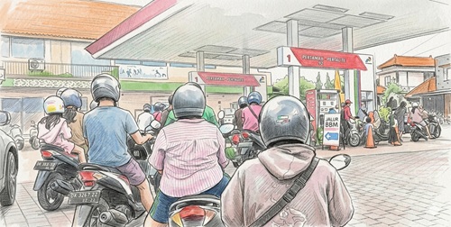 LESINDO.COM – Di bawah langit siang yang biasanya lengang, deretan sepeda motor kini mengular pelan di halaman SPBU Pertamina. Mesin-mesin kecil itu menyala setengah sabar, seperti menunggu sesuatu yang tak sepenuhnya mereka mengerti. Bukan hanya jalur Pertalite yang padat, tetapi juga Pertamax—yang selama ini identik dengan pilihan “lebih longgar”—ikut terseret ke dalam antrean.