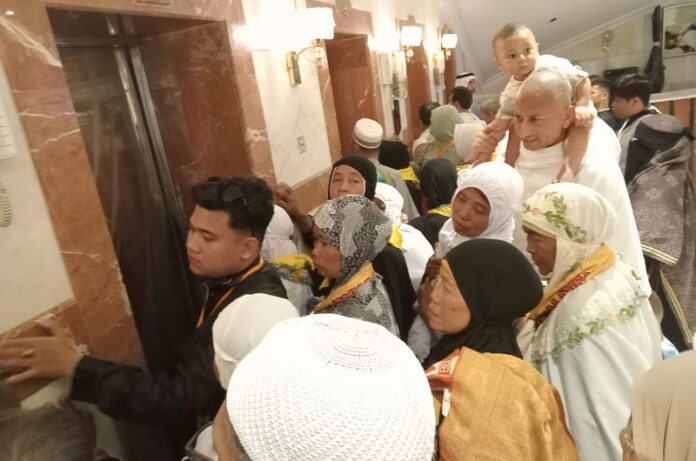 LESINDO.COM-Di lantai 8 Hotel Olayan Golden, sekitar delapan ratus meter dari Tower Zam-Zam atau 5,4 km ke pusat baitullah suasana menjelang pulang begitu terasa. Empat pintu lift berdiri berjejer, tak pernah benar-benar sepi, selalu penuh oleh jamaah yang menunggu dengan sabar. Setiap kali pintu terbuka, pandangan mata berharap ada sedikit ruang tersisa, namun sering kali harapan itu tertutup kembali secepat pintunya menutup. Di lantai delapan itu, sabar kembali diuji. Empat pintu lift tak henti-henti membuka dan menutup, namun sering kali tanda bunyi peringatan terdengar pertanda ruang di dalamnya sudah terlalu penuh. Jamaah pun harus rela melangkah keluar lagi, menunggu giliran berikutnya dengan harapan masih ada pintu yang terbuka, membawa mereka turun ke lantai dasar.