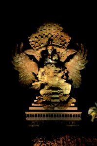 LESINDO.COM – Malam perlahan turun di Bukit Ungasan. Dari kejauhan, siluet raksasa Garuda Wisnu Kencana (GWK) mulai memantulkan cahaya. Kilau lampu menari di permukaan patung setinggi 121 meter itu, menghadirkan bayangan agung di langit Bali bagian selatan. Dari atas kawasan taman budaya ini, Denpasar tampak seperti hamparan permata—lampu kota berkelap-kelip di antara gelap bukit dan garis tipis cahaya laut Jimbaran.