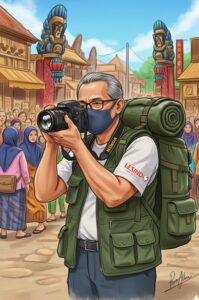 Busana terbaiknya, sekaligus tameng terkuatnya, adalah kamera yang dipanggul dan rompi lapangan yang penuh cerita. Ia adalah penjelajah realita; sebuah lensa yang ia rawat dengan kehati-hatian adalah satu-satunya jembatan yang ia miliki untuk menyeberang ke sisi kehidupan yang tersembunyi.