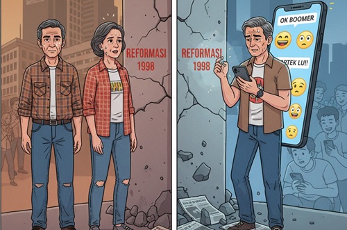 Saat dewasa muda, hidup langsung dilempar ke Reformasi 98, lengkap dengan krisis moneter yang membuat mereka percaya bahwa uang bisa menguap lebih cepat dari air sumur di musim kemarau. Tak heran Gen-X hemat: bukan karena pelit, tapi karena pernah melihat harga mie instan bisa naik dalam semalam. Mental mereka ditempa bukan oleh motivator, tapi oleh antrian sembako.