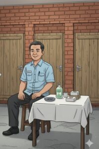 Tapi penjaga kamar mandi itu… entah mengapa, mataku langsung menangkap sesuatu yang berbeda. Badannya tegap meski usia senja tampak jelas di wajahnya. Tatapannya tajam, nadanya berwibawa, dan ada keteduhan yang sulit dijelaskan. Ia bukan sosok penjaga kamar mandi yang biasa kutemui di perjalanan. Ada aura disiplin, seolah bayangan masa lalu yang masih melekat kuat.