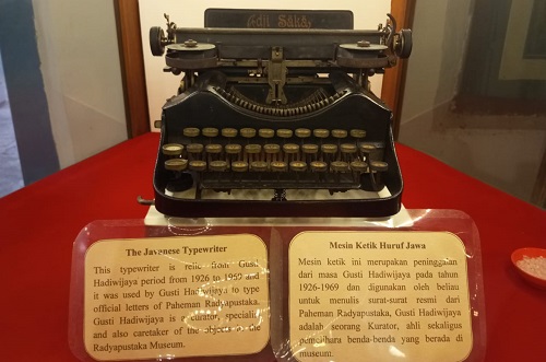 Sebagian besar mesin serupa kemudian disimpan, rusak, atau hilang. Beruntung, salah satunya kini menjadi koleksi tetap Museum Radya Pustaka, museum tertua di Indonesia yang didirikan tahun 1890 oleh Kanjeng Adipati Sosrodiningrat IV. Mesin ketik itu kini ditempatkan di ruang koleksi budaya dan filologi. Di sana, pengunjung bisa menyaksikan langsung bagaimana aksara Jawa diadaptasi ke tuts logam—sebuah inovasi luar biasa di zamannya. (Fai)