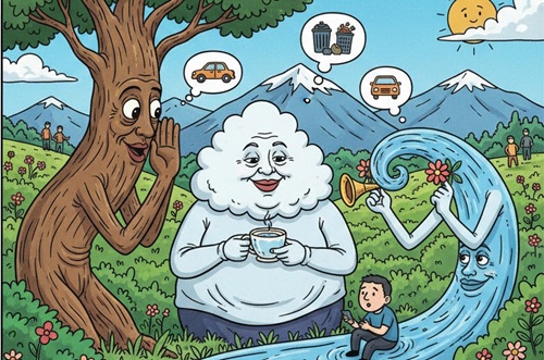 “Mohon maaf, manusia yang terhormat… aku sudah sabar sejauh ini. Tapi kalian itu lho: kalau aku panas, kalian bilang aku kejam. Kalau aku hujan, kalian bilang aku lebay.”