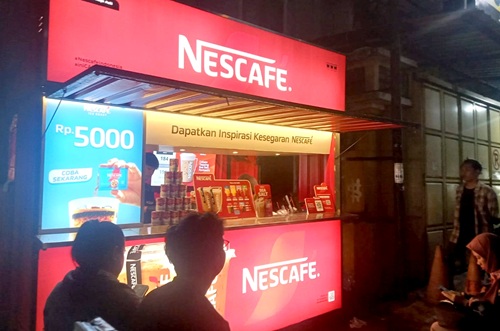 LESINDO.COM – Di sebuah sudut jalan yang tak begitu lebar, malam perlahan mengental. Lampu-lampu toko mulai meredup, namun satu titik cahaya justru terlihat semakin terang: sebuah gerai Nescafé berwarna merah menyala, berdiri mencolok di tengah arus manusia yang tak kunjung sepi. Seakan menjadi oase baru bagi para pejalan, kios kecil itu memancarkan kesegaran—baik dari aroma kopi maupun dari hiruk-pikuk yang mengitarinya.
