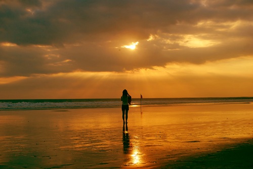 LESINDO.COM – Penantian yang panjang sering kali tidak hadir sebagai sesuatu yang megah. Ia justru datang pelan, temaram, seperti langkah kaki di pasir yang perlahan dihapus ombak. Di tepi pantai Kuta, saat langit mulai kehilangan terangnya, seseorang bisa belajar bahwa hidup bukan tentang seberapa cepat kita sampai, tetapi seberapa dalam kita merasakan setiap jeda yang diberikan waktu.