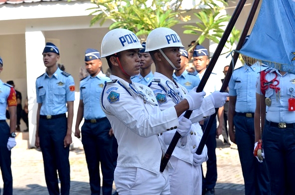 Dua petugas upacara berpakaian putih berdiri tegak, membawa bendera panji kebesaran SMK Pelayaran berdampingan dengan Sang Merah Putih mengiringi prosesi pelantikan. Suasana hening tercipta, ketika perwakilan setiap tingkat di lantik secara simbolis, mengingatkan setiap taruna akan janji suci mereka terhadap bangsa dan negara. Sorot mata para taruna muda seakan berkata: hari ini, mereka bukan lagi siswa biasa, tetapi insan terpilih yang siap ditempa.