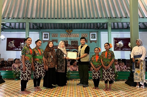 Penghargaan tersebut diserahkan langsung oleh Ketua Panitia, Yanuar B., sebagai bentuk pengakuan atas keterlibatan sekolah dalam kegiatan evaluasi dan pembinaan seni tradisional.