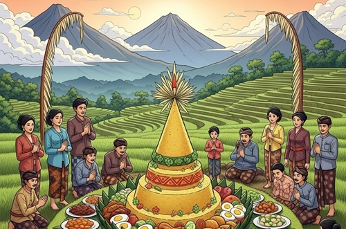 Pagi itu, embun masih menggantung di rumpun padi ketika warga sebuah pedukuhan di kaki Gunung Merapi mulai berdatangan ke balai desa. Mereka membawa ubarampe—tumpeng kuning, hasil panen, jajan pasar, hingga seikat kangkung yang baru dipetik—semua diselimuti niat yang sama: menjalankan laku Sedekah Bumi, sebuah tradisi Jawa yang memadukan rasa syukur, kerendahan batin, dan penghormatan kepada alam.