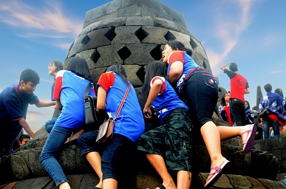 LESINDO.COM – Matahari mulai meninggi di langit Magelang. Di puncak Candi Borobudur, ratusan stupa berdiri kokoh seolah menantang waktu. Namun, ada satu hal yang selalu menarik perhatian pengunjung: upaya mereka menjulurkan tangan ke celah-celah batu untuk meraih arca Buddha di dalam stupa. “Katanya kalau bisa menyentuh, keinginan kita bakal terkabul,” ujar Sari, siswi SMA asal Semarang, sambil tertawa kecil. Ia baru saja berhasil menyentuh arca setelah berkali-kali berusaha. Wajahnya masih berbinar, seolah sentuhan singkat itu memberi energi baru. “Saya berharap bisa lulus ujian dengan nilai bagus,” tambahnya.