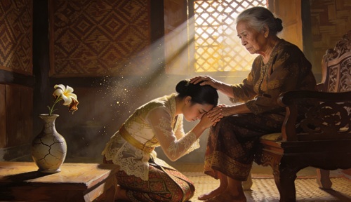 Di sini, sungkeman berubah menjadi jembatan—antara yang hidup dan yang telah pergi. Antara raga dan kenangan.