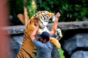 Selain gajah, ada pula pertunjukan teatrikal yang melibatkan harimau, lumba-lumba, berbagai jenis burung, dan satwa lain yang telah dilatih melalui pendekatan positif. Pertunjukan ini tidak dimaksudkan sekadar hiburan, tetapi juga edukasi tentang perilaku, konservasi, dan hubungan manusia dengan alam liar.
