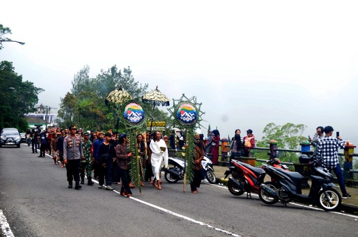 LESINDO.COM – Gunung Lawu, yang membentang di perbatasan antara Jawa Tengah dan Jawa Timur, bukan sekadar gunung bagi para pendaki. Di balik keheningan alaminya, ada jejak-jejak kearifan lokal yang terus tumbuh, ritual yang menghubungkan manusia dengan alam, leluhur, dan rasa Syukur kepada Maha Pencipta. Gunung Lawu menjadi saksi sebuah ritual yang menarik perhatian publik. Puluhan orang, berpakaian sorjan dengan ikat kepala dan selebihnya pakaian hitam dengan bawahan balutan hatam kedua pakaian yang melambangkan kesederhanaan. Mereka berkumpul dipintu pendakian Cemoro Kandang dan akan melakukukan kirab budaya menuju Punden Pertapaan Bancolono yang terletak di lereng Gunung Lawu, di wilayah Kabupaten Karanganyar, Jawa Tengah, pada perbatasan antara Karanganyar dan Magetan